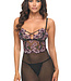 Feel the attraction in your kiss with this gorgeous chemise! Features a boned bodice chemise with floral embroidery, sheer mesh skirt with romantic drape, adjustable shoulder straps, and includes a matching G-string. Read more..