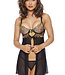 Surprise your sweetie in this flirty babydoll! Features a sheer babydoll with floral embroidery, underwire cups, keyhole front, hook and eye back, and matching panty! Read more..