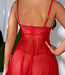 Ensure a stunning impact on your most special occasions in this sensual babydoll! Features a sheer lace babydoll with criss cross front, mini dot texture, adjustable straps, and matching panty! Read more..