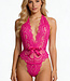 Surprise your sweetie in this sexy teddy! Features a sheer lace teddy with halter tie neck, tie ribbon waist, and cheeky back!