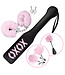 Step into the world of bondage with the Naughty in Pink beginner kit by Bondage by Nasstoys, a flirty, fun, and approachable way to explore your desires. This curated set includes everything you need for an enticing blend of sensation and control. The dual-ended impact and sensation tool features a soft feathered end for teasing touches and a beginner-friendly crop for playful whacks. Feather-tipped nipple clamps add a delicate, tingling thrill while lightly brushing against the skin, making every moment feel indulgently intimate. For those seeking a touch of restraint, the fuzzy metal cuffs offer comfort with a quick-release option for safety and ease. Ready to leave a mark, literally? The XOXO paddle stamps a cheeky message while delivering a satisfying smack. Perfect for first-timers, this kit balances comfort, style, and excitement, making it an irresistible choice for anyone curious about bondage play.