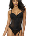 Cheri features a sheer lace bustier with adjustable straps, satin bow accent, adjustable garter stra..