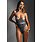 Get down and dirty in this provocative teddy set featuring open underwire cups with strappy detailing, a choker neck with adjustable straps, an O-ring, a sheer mesh bodice with an opaque center panel, an adjustable back band, an opaque waistband with a ba Read more..