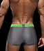 The Sexy Slinky Trunk from Envy Menswear offers a sleek and modern look with its unique metallic shimmering texture. Crafted in a bold color, this trunk is designed from a premium blend of nylon and spandex, providing a smooth, flexible, and comfortable fit. The contrasting grey waistband adds a pop of color, featuring the Envy logo for a bold, branded finish. This underwear is lightweight, breathable, and perfect for those who want to add a touch of luxury to their everyday essentials.