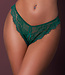 Features a lace panty with scalloped edges, satin bow and split crotch!
