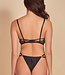 Hug your curves in this flirty lingerie set! Features a satin and embroidered mesh bra with underwire, caged side and back, peek-a-boo cups, hook and eye back closure, and matching strappy satin and mesh panty. Read more..