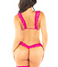 Set hearts racing in this ultra-flirty 3 piece bra and panty set. With a sweet and sexy vibe, the ruffle trimmed bow lace bralette, g-string panties, and bow top thigh highs are sure to get their attention. One Size.