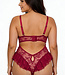 Turn heads and captivate every gaze with this gorgeous teddy! Features a sheer lace teddy with tie up front, paneled design, ruffled off the hips accents, adjustable straps, hook and eye, and cheeky back! Read more..