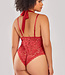 Entrance your sweetheart in this stunning teddy! Hera features a shiny allover lace teddy with satin halter tie, adjustable shoulder straps, underwire, lace trimmed cups and leg opening, and scoop back opening.