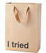 Think wrapping paper is overrated? Elevate your passive-aggressiveness with our “I Tried” snarky gift bag, made from Kraft paper with a brown ribbon handle. It’s the white elephant in the room that actually makes your gag gifts even gag-ier. Holiday cheer sold separately. One size only.