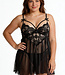 Set the sassy tone for the evening in this lovey babydoll! Features a sheer lace babydoll with a strappy appearance, satin bow accents, adjustable straps, and matching panty! Read more..