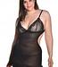 Shock your babe in this sexy chemise! Features a mesh chemise with lace cups and ruffles, cut out with half skirt, and matching G-string!