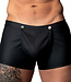 The Snap Off Short is a bold take on easy access men's trunks, designed to deliver instant impact and effortless reveal. Made from sleek, rubberized spandex with a flat matte black finish, this men's trunk underwear features functional heavy-duty nickel-plated snaps on the tearaway pouch for fast, on-demand access. The low-rise waist and high-cut legs offer a flattering fit with full coverage in the back, perfect for anyone seeking standout styles with both sex appeal and practicality.