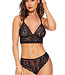 Tempt and tease in this sexy lingerie set! Features a sheer lace bralette with scalloped edges, halter style neck, adjustable straps, pearl strap on back, and matching cheeky panty! Read more..