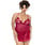 A flirty and romantic babydoll featuring metallic embroidered cups and a sheer mesh skirt with side slits and delicate bow details. Includes adjustable straps and a matching panty for a perfect fit and playful appeal. Read more..