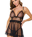 This charming dot mesh babydoll and G-string set is the perfect blend of playful and flirty. Featuri..