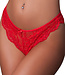 This style features a lace panty with scalloped edges, satin bow and split crotch.