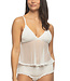 Voluminous mesh ruffle details add frilly glamour to this extremely comfortable 2-pc set. Cami has soft cups with mesh ruffles that hide just enough, elastic underbust for light support, and adjustable elastic straps. Classic rumba ruffle panty is a confectionary, cheeky delight - and a comfortable one at that!