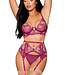 Features a dainty floral embroidery bralette with underwire cups, adjustable straps, hook and eye back, matching high waisted garter with garter straps, and matching panty! Read more..