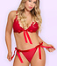 When the moment calls for something racy and tasty, you won’t second guess slipping into the Sugar & Spice Ribbon Tie Bra & Panty Set. This gorgeous 2 piece lingerie set features a triangle bra with soft lace and stretchy mesh cups, elastic and adjustable shoulder straps with gold tone sliders, functional satin ribbon ties, and a matching mesh and lace tie side panty.