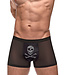 Features a sheer boxer brief with skull print pouch and detail trimming.