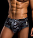 Introducing the Camo Trunks, featuring a camouflage design that merges style with comfort. Crafted from a blend of polyester and spandex, these trunks boast a snug fit and breathable fabric, perfect for any activity. The grey and black camouflage pattern exudes confidence, while the added dog tag detail on the left side adds an edgy charm. Embrace individuality and style with Envy's statement-making underwear.