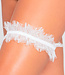Features an eyelash lace and elastic leg garter. One Size.