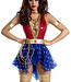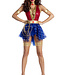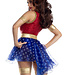 This is a job for you! Be ready to save the day in this Wonderlady costume featuring a red and blue romper with a sequin bodice and a star printed peplum skirt, a deep V-neckline with gold criss-cross straps, wraparound leg garters, a removable belt, a se Read more..