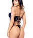 A versatile and luxurious two-piece set in a bold floral velvet pattern. Features an underwire bustier with removable straps and a sexy lace-up back, paired with a matching adjustable panty for the perfect fit. Read more..
