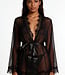Tempt, tease and be pleased in this seductive robe! Features a sexy sheer robe with arm length sleeves, eyelash lace trim, satin waist tie, and matching panty!